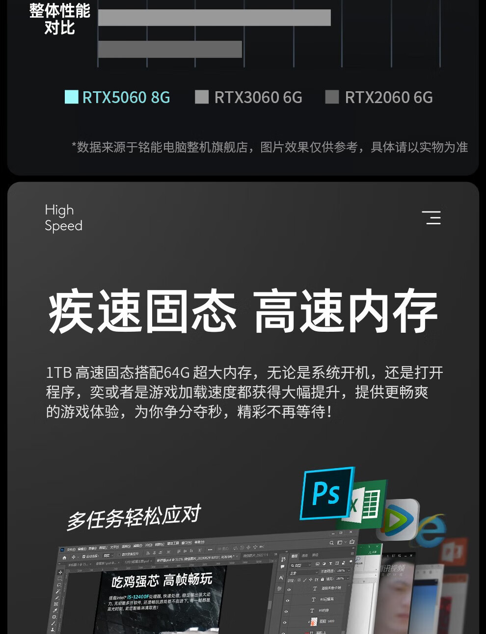 铭能英特尔i5酷睿i7升24核/RTX5060/4060台式电脑台式机电脑主机组装电脑全套整机办公电竞直播游戏 套一:i7级16芯/16G/256G/性能独显 单主机【2025新款+五年质保】